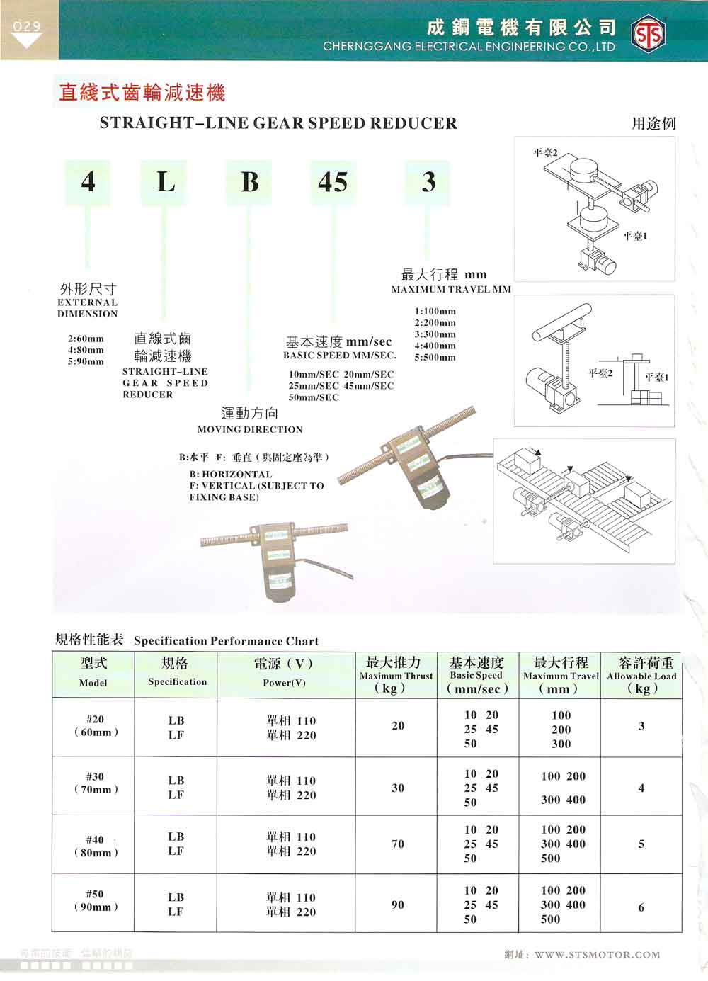 最大行程:100mm、 200mm、300mm、400mm 、 500mm
